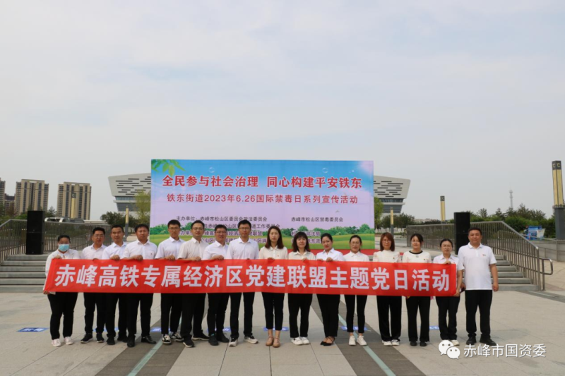 6月26日,赤峰市高鐵投資開(kāi)發(fā)有限責(zé)任公司黨支部牽頭赤峰高鐵專屬經(jīng)濟(jì)區(qū)黨建聯(lián)盟各成員單位,參加了松山區(qū)鐵東街道舉辦的主題為“全民參與社會(huì)治理,同心構(gòu)建平安鐵東”第36個(gè)國(guó)際禁毒日系列宣傳活動(dòng)。