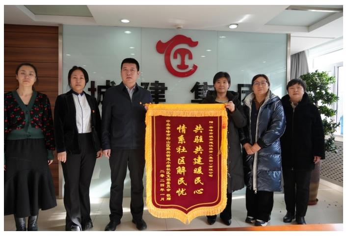 “思民生,解民難,做實(shí)事,暖民心,感謝城建集團(tuán)為我們小橋社區(qū)解決了多年以來的老舊小區(qū)老大難問題?!?024年2月1日上午,城建集團(tuán)黨委副書記、副董事長潘志偉接到了赤峰市松山區(qū)振興街道黨工委書記、人大工委主任宋占英代表社區(qū)居民送來的一面大紅錦旗,題為“共駐共建暖民心,情系社區(qū)解民憂”,短短的14個(gè)字,卻代表著對城建集團(tuán)作為大國企勇于承擔(dān)社會(huì)責(zé)任的充分肯定,同時(shí)也表達(dá)了對城建集團(tuán)助力幫扶的感謝之情。