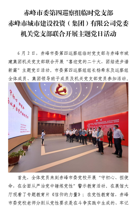 赤峰市委第四巡察組臨時(shí)黨支部 赤峰市城市建設(shè)投資(集團(tuán))有限公司黨委機(jī)關(guān)黨支部聯(lián)合開(kāi)展主題黨日活動(dòng)