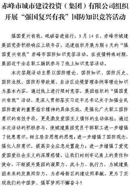 赤峰市城市建設(shè)投資(集團(tuán))有限公司組織開展“強國復(fù)興有我”國防知識競答活動