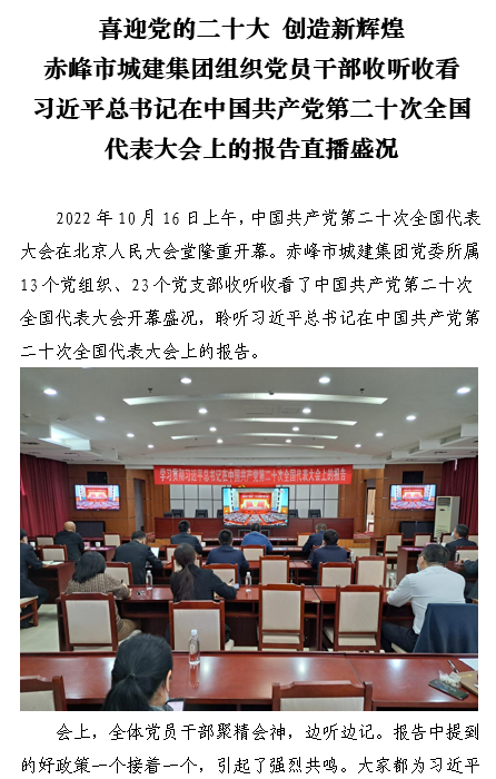 喜迎黨的二十大 創(chuàng)造新輝煌 赤峰市城建集團組織黨員干部收聽收看 習近平總書記在中國共產黨第二十次全國代表大會上的報告直播盛況