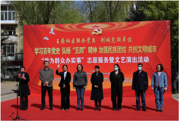 • 4月30日,城建集團(tuán)黨委聯(lián)合王府社區(qū)舉辦了以“學(xué)習(xí)百年黨史,弘揚(yáng)五四精神”為主題的志愿服務(wù)和文藝演出活動(dòng)等一系列主題黨日活動(dòng),讓黨史學(xué)習(xí)教育進(jìn)一步助力民族團(tuán)結(jié)進(jìn)步和五四青年愛國主義教育。