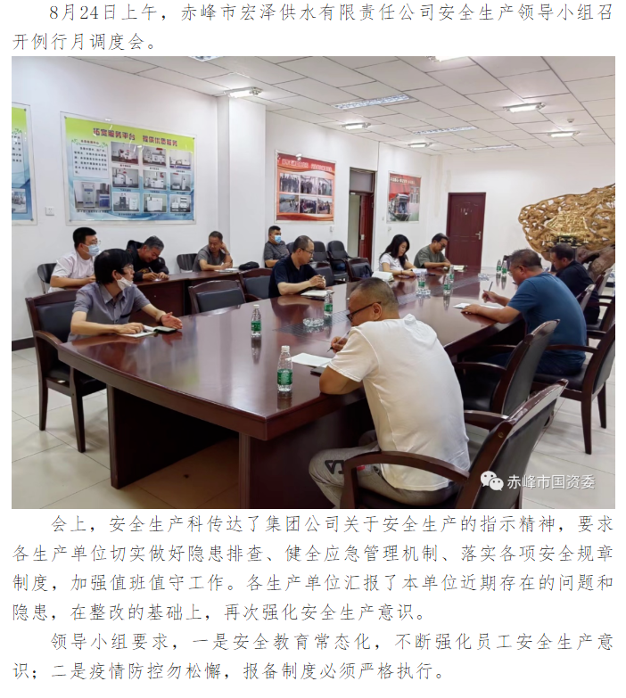 赤峰市宏澤供水有限責任公司強化安全意識 加強隱患排查